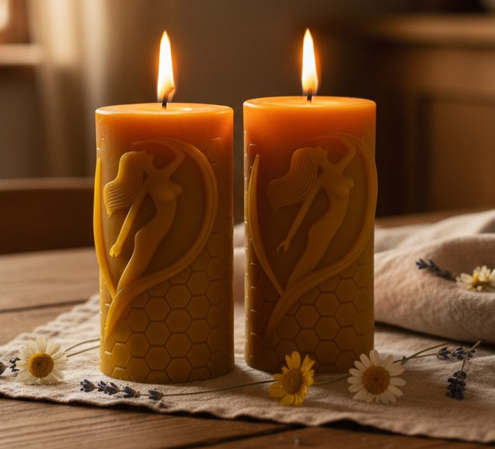 Świeca z wosku pszczelego APIMEL – Kobiecość Natury to połączenie elegancji, siły i delikatności zamkniętej w czystym, naturalnym wosku pszczelim. Wykonana ręcznie w naszych pasiekach na terenie Spisza i Podhala, zachwyca precyzyjnym wzorem kobiecej sylwetki otoczonej subtelnym motywem plastra miodu. Symbolizuje harmonię między naturą a kobiecą energią.