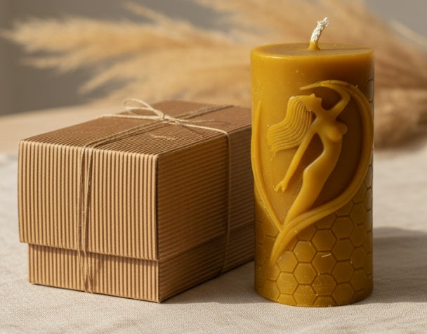Świeca z wosku pszczelego APIMEL – Kobiecość Natury to połączenie elegancji, siły i delikatności zamkniętej w czystym, naturalnym wosku pszczelim. Wykonana ręcznie w naszych pasiekach na terenie Spisza i Podhala, zachwyca precyzyjnym wzorem kobiecej sylwetki otoczonej subtelnym motywem plastra miodu. Symbolizuje harmonię między naturą a kobiecą energią.