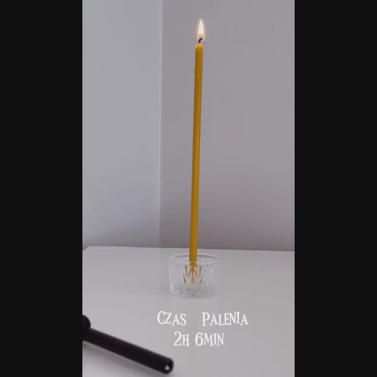 Materiał i palność – świeca wykonana jest w 100% z naturalnego wosku pszczelego, który jest materiałem łatwopalnym. Używać wyłącznie pod nadzorem osoby dorosłej.